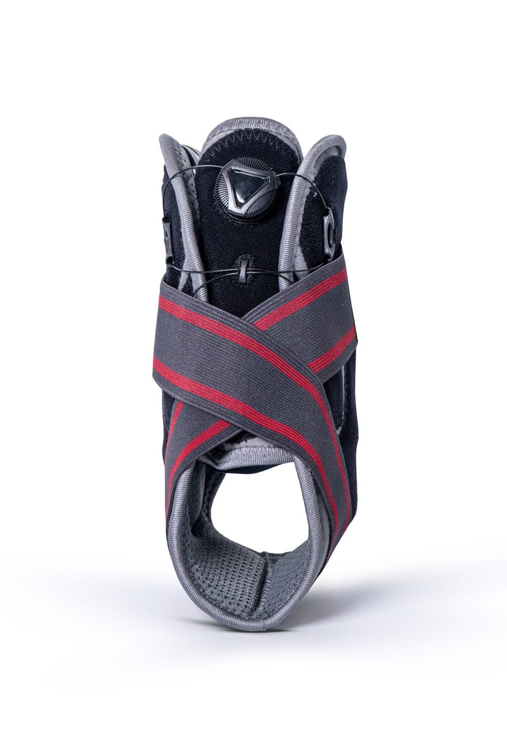 - Orteza wyposażona została w system kompresyjny regulowany pokrętłem, który ułatwia dopasowanie ortezy do stopy.