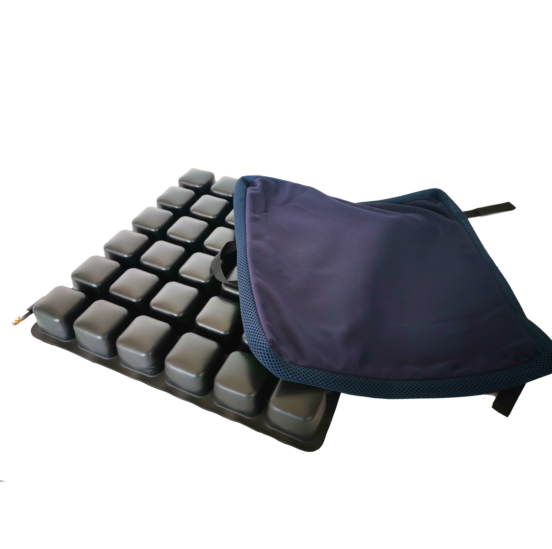 Przeciwodleżynowa poduszka odciążająca, zaprojektowana dla pacjentów spędzających w pozycji siedzącej ponad 15 godzin dziennie, ze średnim i wysokim ryzykiem powstania odleżyn, stosowana w ich profilaktyce i leczeniu w celu zmniejszenia nacisku na tkanki miękkie.